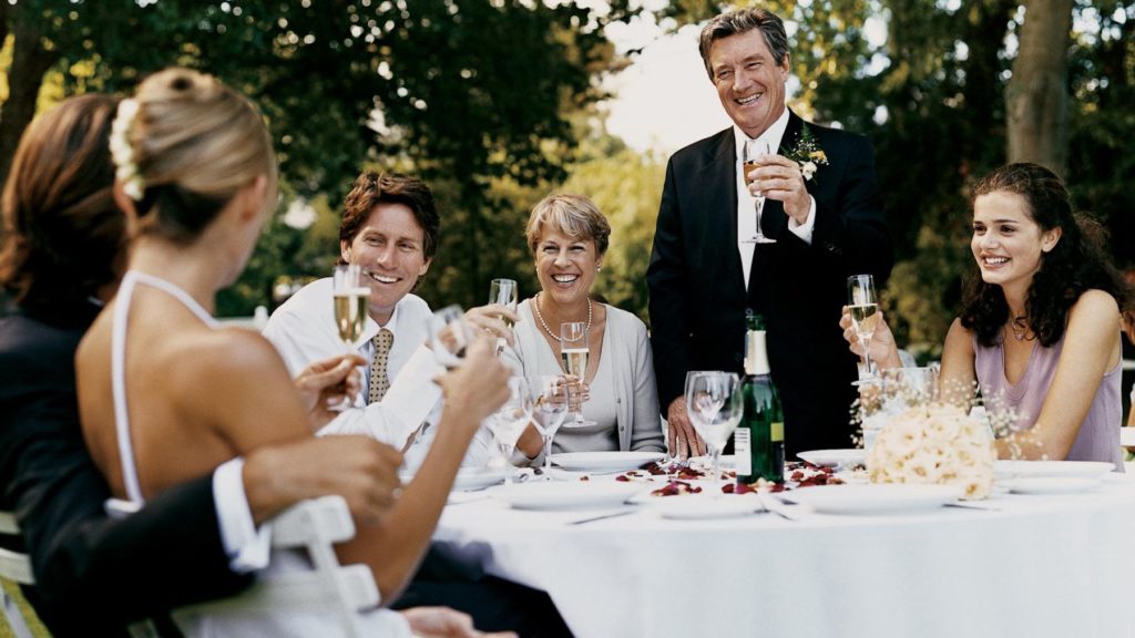 Чаще всего на свадебном банкете присутствуют родственники, как со стороны жениха, так и невесты. Обращаясь к молодым, они стараются показать, как они счастливы за пару, что чувствуют, а также передают свой жизненный опыт, который пригодится в семейной жизни.