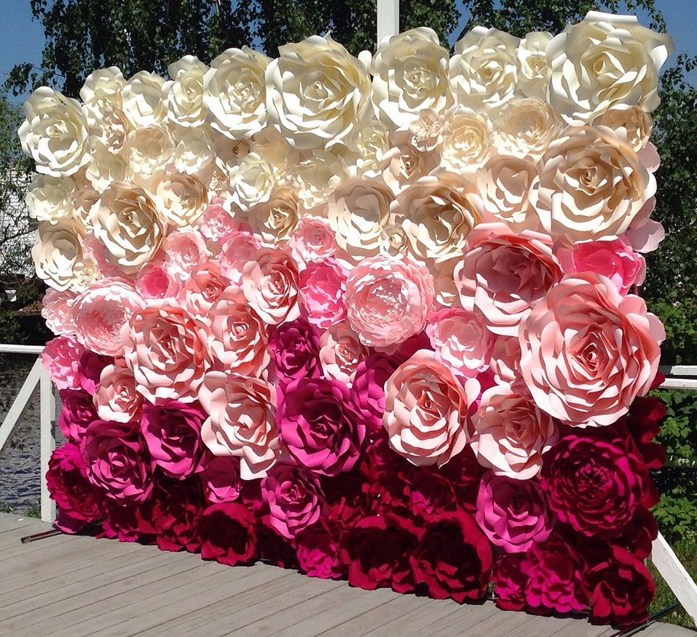 Вот, например, фон для фотосессии из бумажных цветов. Такое оформление можно сделать своими руками. Это совсем не сложно, но выглядит очень красиво. Видео-уроки: