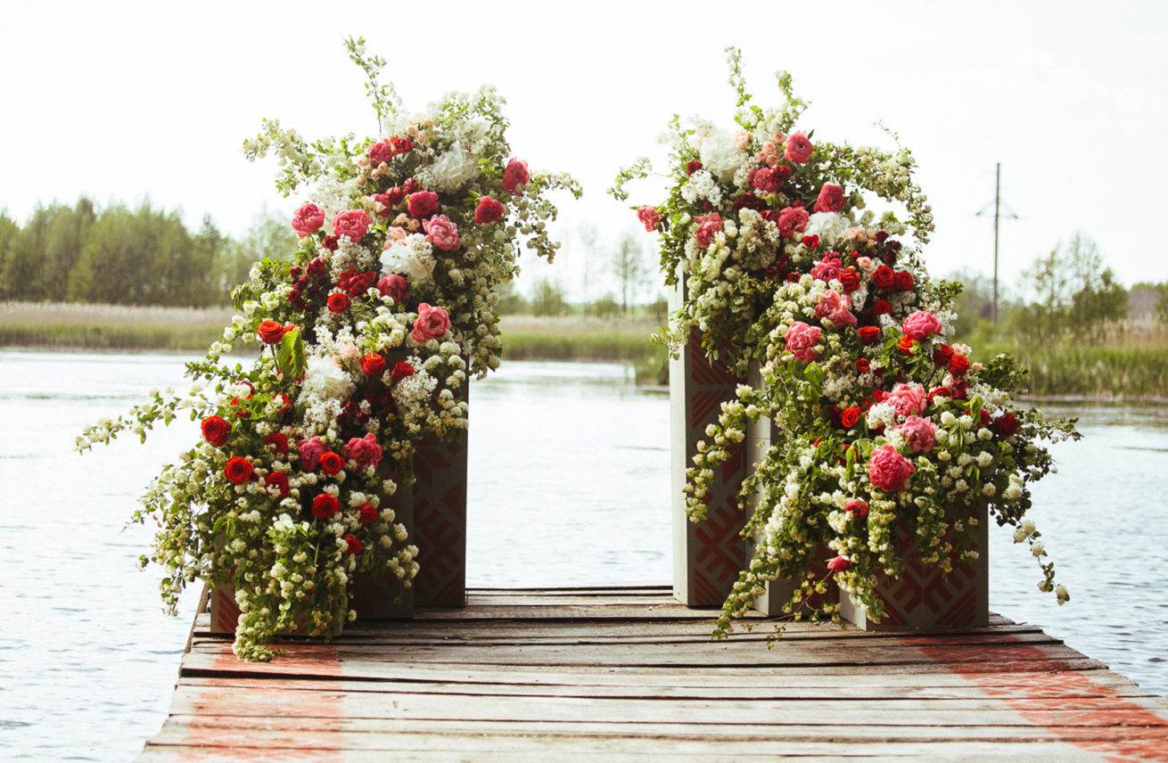 Цветы — украшение любого праздника, поэтому их можно применить и для оформления фотозоны на свадебный день.