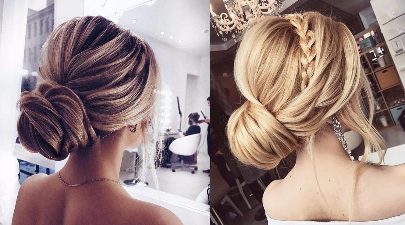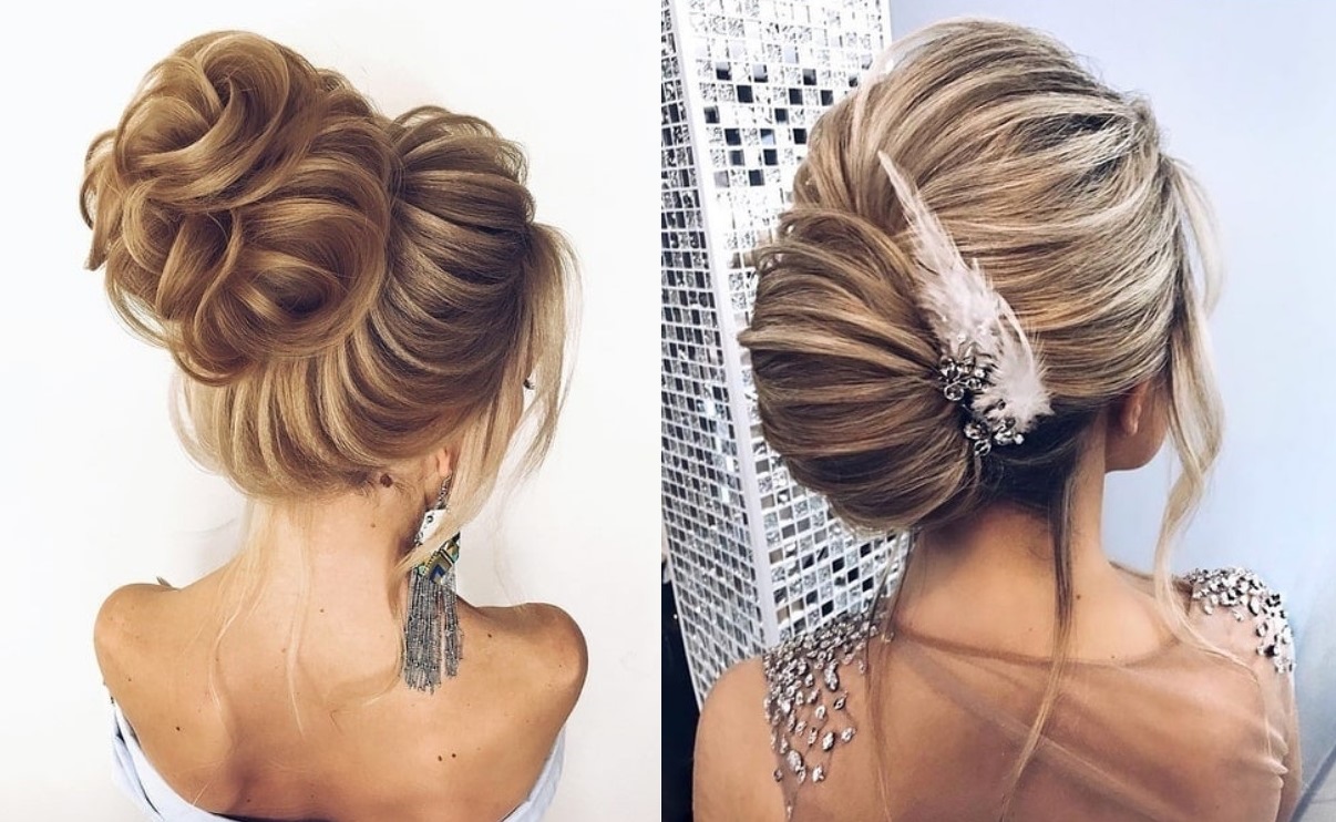 Сюда же входит декольтированный наряд или длинное убранство узкого кроя. Все это влияет на то, каким будет ваш свадебный пучок. Стильные свадебные прически не первый год включают в свой список пучок, будь то объемный, с завитками или нарочно выбившимися прядями, обрамляющими лицо.