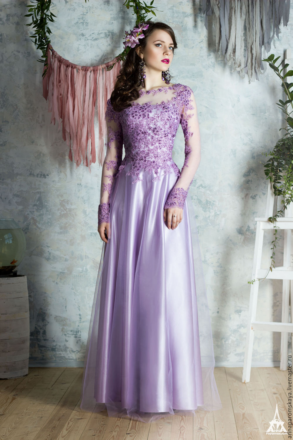- Фиолетовое платье – это роскошь и королевское достоинство. Необязательно выбирать насыщенные тона, светло-сиреневый или нежно-аметистовый создадут образ возвышенной, романтичной девушки, нежной лесной феи или русалки.