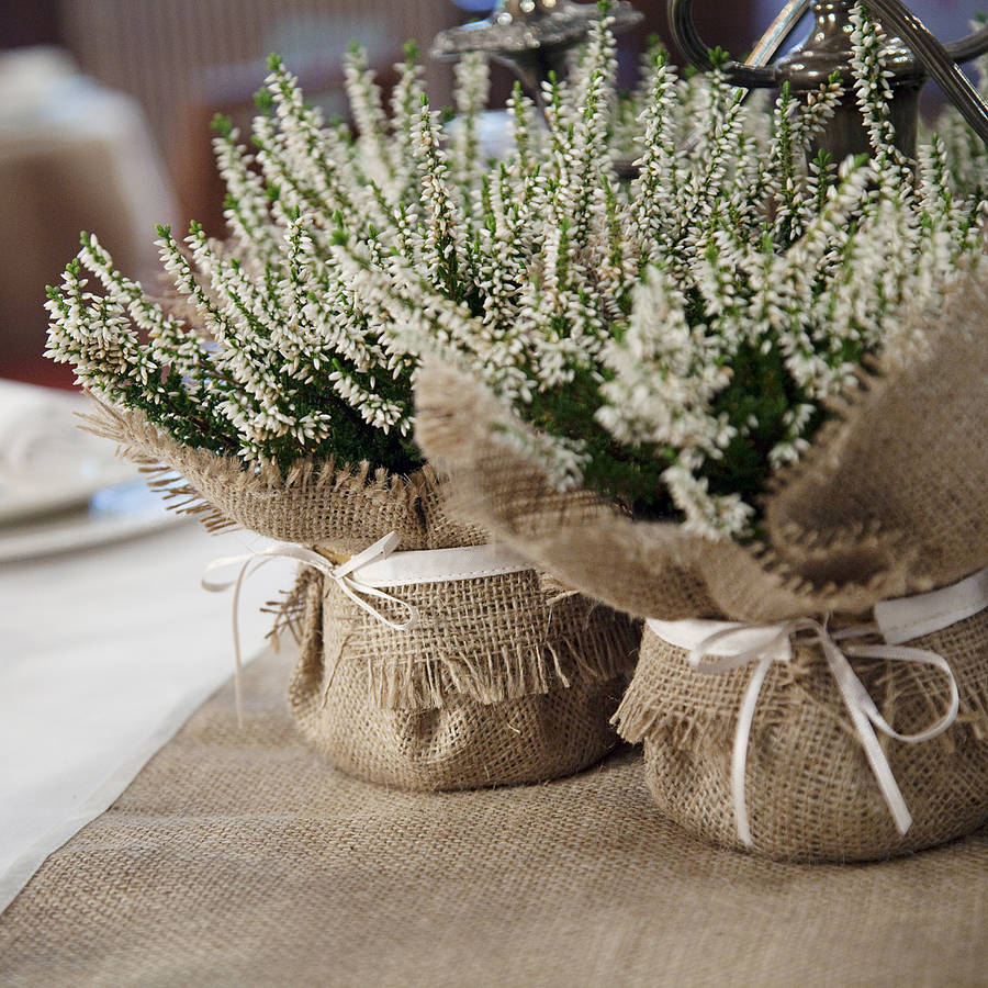 Букетами можно украшать не только столы и стены свадебного зала, но также сделать маленькие сувениры. Такие мешочки дополнят стиль свадьбы и долго будут напоминать гостям о торжестве.