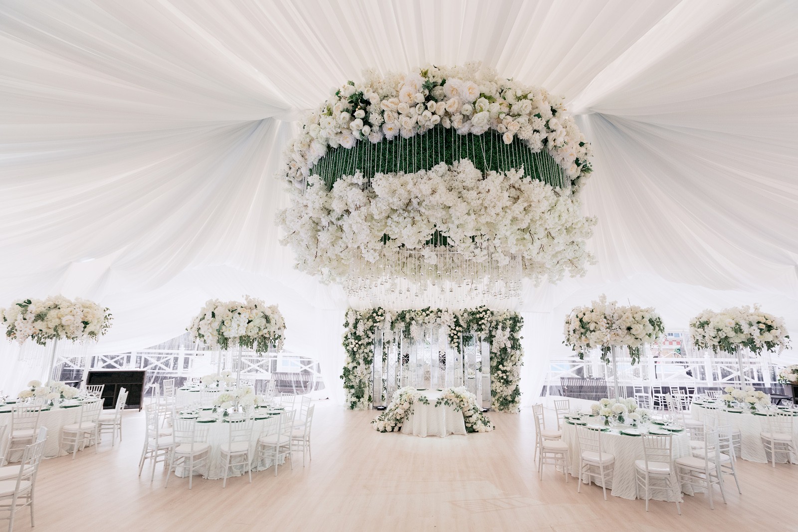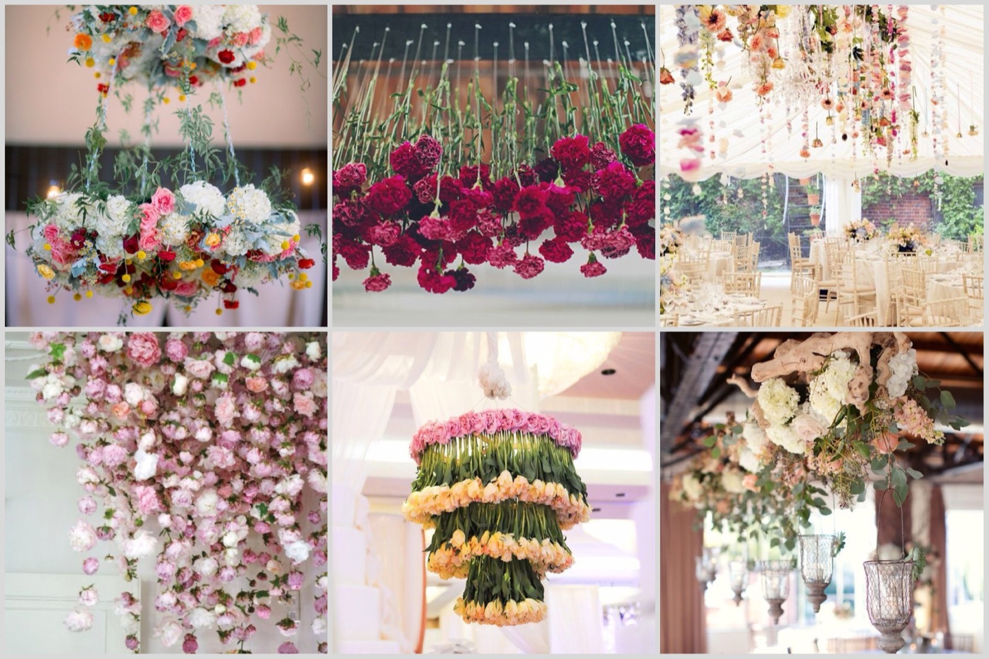 Украшение цветами люстр, потолка. Создание цветочных гирлянд.