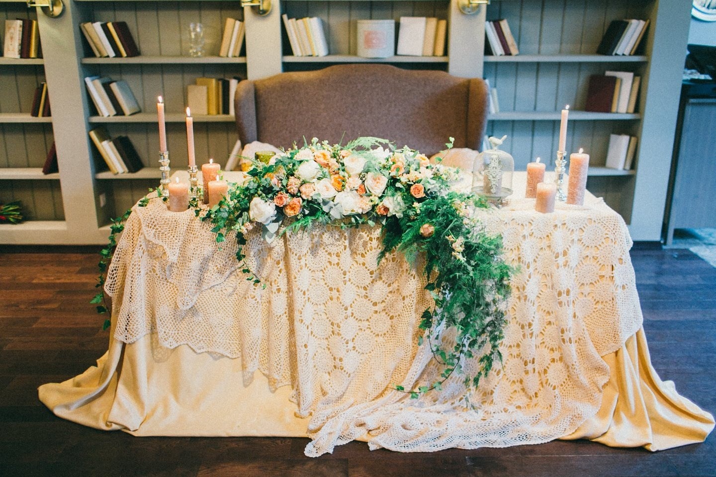 - В дизайне используются тканевые драпировки и букеты живых цветов, обыгрываются монограммы;