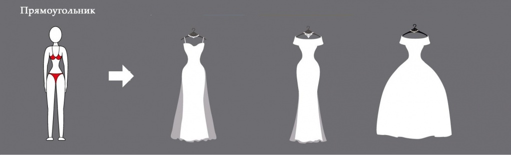 Девушкам с фигурой “прямоугольник” следует подобрать свадебное платье, которое скорректирует талию и визуально увеличит грудь и бедра. Предварительно нужно измерить обхват плеч, груди, талии и бедер, чтобы определить ту часть, которая поддается “коррекции”, и выбирать фасон, исходя из этих индивидуальных особенностей. Чаще всего невесты с фигурой типа “прямоугольник” выбирают классические фасоны платьев с пышной юбкой и заниженной талией. Недостающий объем плеч и бедер помогут создать разнообразные украшения: воланы, пышные рукава, украшения на лифе.