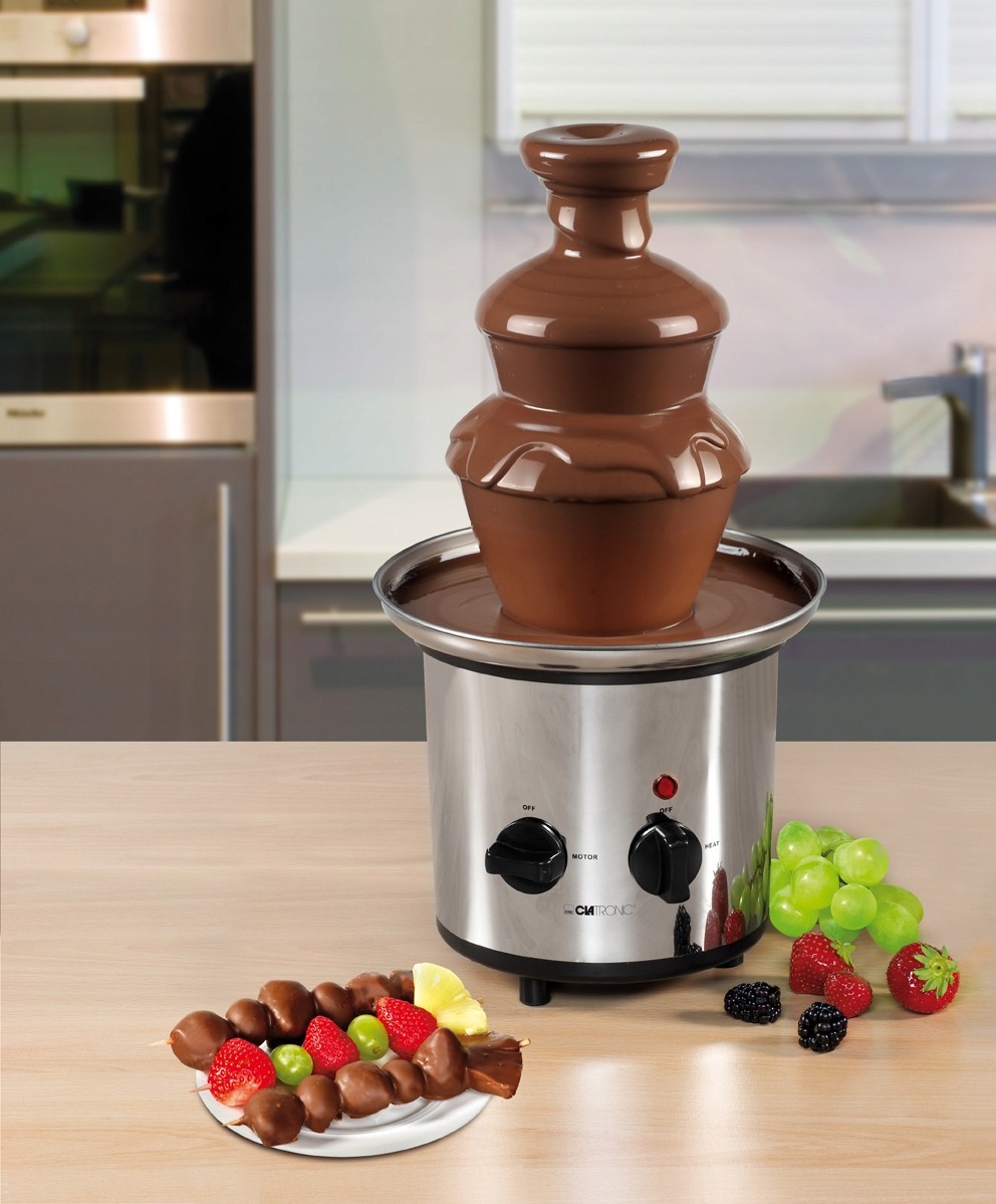 Маленькие аппараты идеально подходят для семейных праздников, а также активно используются в качестве украшения романтического ужина. Обычно их высота не превышает 40 см, кроме того, они снабжены двумя–тремя ярусами. В такие приборы, как правило, загружается не более килограмма шоколадной продукции. Помимо прочего, компактная модель для дома может послужить отличным подарком.