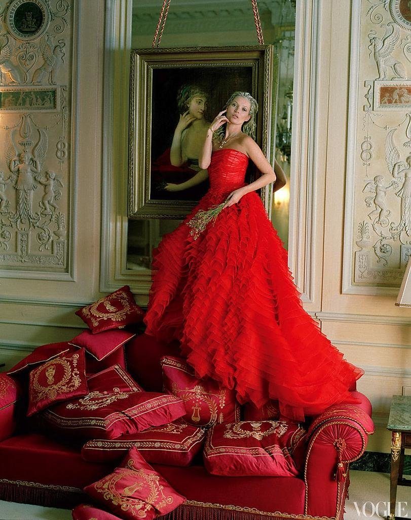 Красная атласная лента, расположенная на груди или под ней, применяется преимущественно для платьев А-силуэта – с вертикальными швами от груди к линии талии или для моделей в стиле ампир
