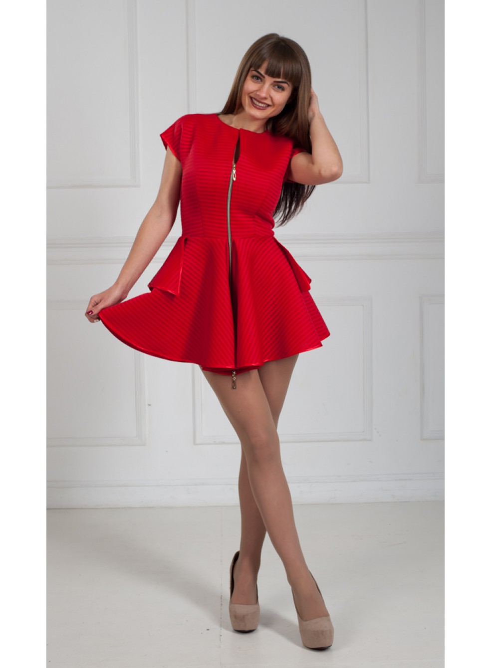 Привлекателен фасон красного свадебного наряда длины мини. Платье выглядит игриво, создавая кокетливое настроение. Популярностью пользуются модели, напоминающие наряды 50-х. Короткая длина приемлема для невест, желающих продемонстрировать стройные ножки.