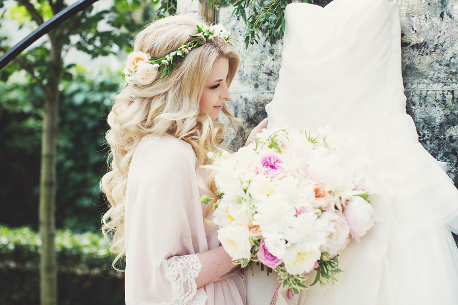 Что касается макияжа, то образ невесты должен быть невинным и естественным, поэтому яркие оттенки и чёткие линии выглядят совершенно неуместно. Стоит отдать предпочтение нюду, лишь слегка подчеркнув естественную красоту.