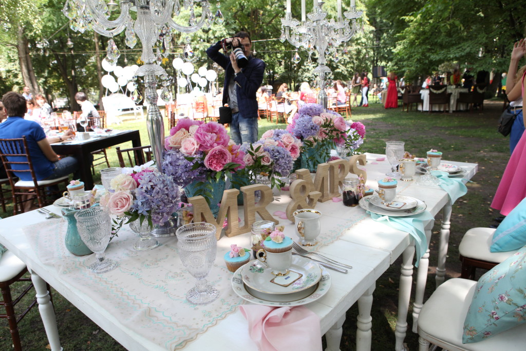 Главная черта шебби шика – старые предметы: начиная от шкафов или комодов и заканчивая передающимися из поколения в поколение украшениями. Вы можете одолжить такие вещи у пожилых родственников, или же купить новые, намеренно состаренные. Старинные птичьи клетки, увитые цветами, богато декорированные шкатулки, дневники, украшенные ленточками и бантиками, кружево помогут правильно расставить акценты.Особенность! Несмотря на утончённую роскошь, шебби шик бывает весьма бюджетным, если воспользоваться помощью антикварных лавок и памятными предметами собственной семьи.Цветовая гамма свадьбы должна оставаться в пастельной палитре. Хорошо, если даже традиционный белый будет у вас не слепяще-снежным, а молочным, цвета слоновой кости, кремовым. Другие допустимые цвета – розовый, от конфетно-светлого до грязноватого оттенка увядшей розы, пудровый, голубой, от едва просматриваемого до практически небесного, персиковый, мятный. Все цвета должны выглядеть выбеленными временем, солнцем, стирками. Яркие акценты совершенно не нужны, они разрушат хрупкое очарование.