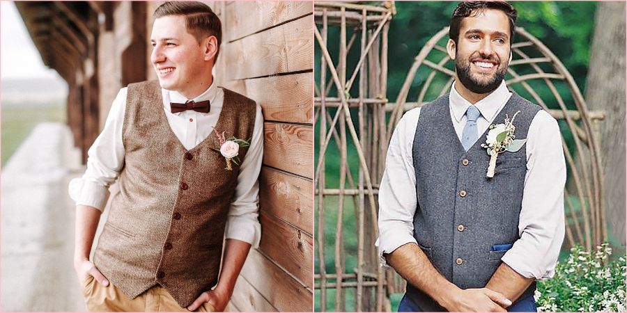 Жилеты должны быть темнее в сравнении с рубашкой, либо выбирается в тон с костюмом. Нередко можно встретить тёмно-синий костюм жениха с белоснежной рубашкой, а также жилетом в чёрном.