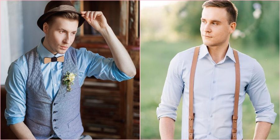 В последние годы «Деревенский рустик» и тематика Бохо-шик особенно популярны среди молодоженов. Они подразумевают праздник на природе, простоту и легкость. Поэтому классические брюки можно заменить на джинсы, туфли – на мокасины, пиджак – на жилетку, а рукава рубашки подвернуть, чтобы еще больше подчеркнуть неординарность образа.