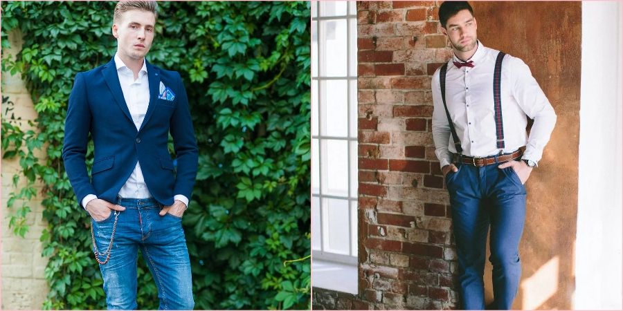 Еще один модный и современный мужской образ – это брюки и пиджак, сшитые из разного материала, который может отличаться цветом, фактурой или стилем.