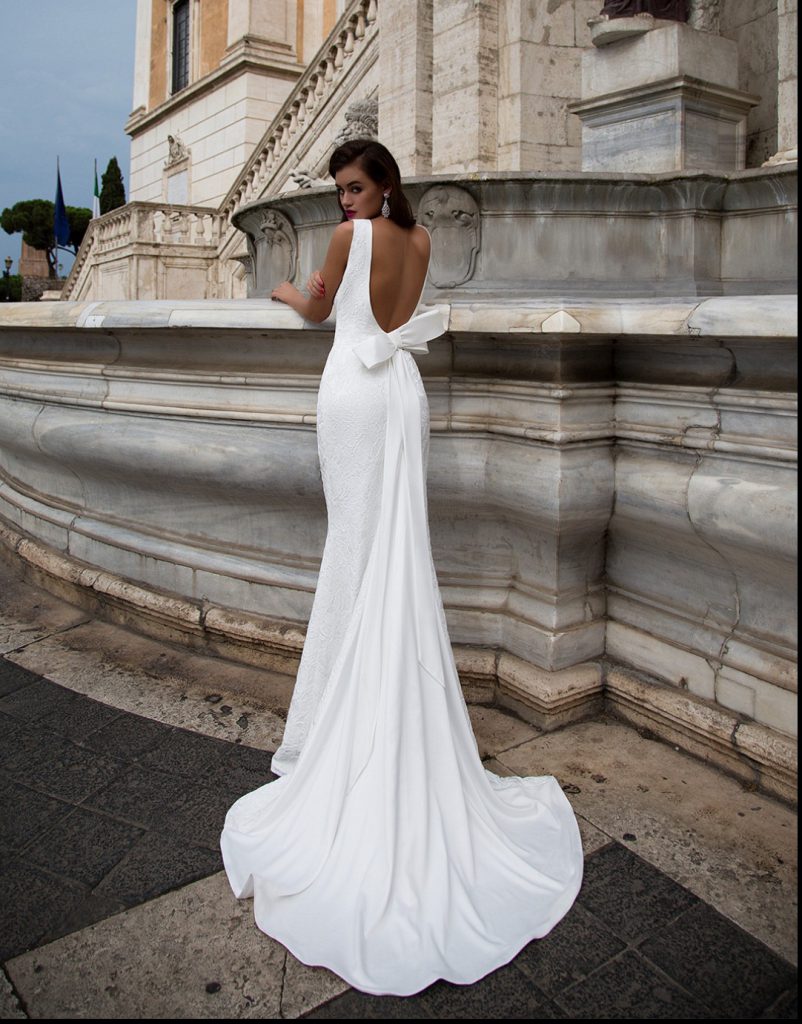 Новинки свадебных образов создаются в разной цветовой гамме. Главное, чтобы тон подходил невесте. Простые ансамбли дополняют изящными бантами. Реализуют прием открытой спины. На пике моды красивые пышные наряды с кружевными облегающими рукавами. Но и ниспадающие рукава с оборками и складками помогают добиться шикарного образа невесты.