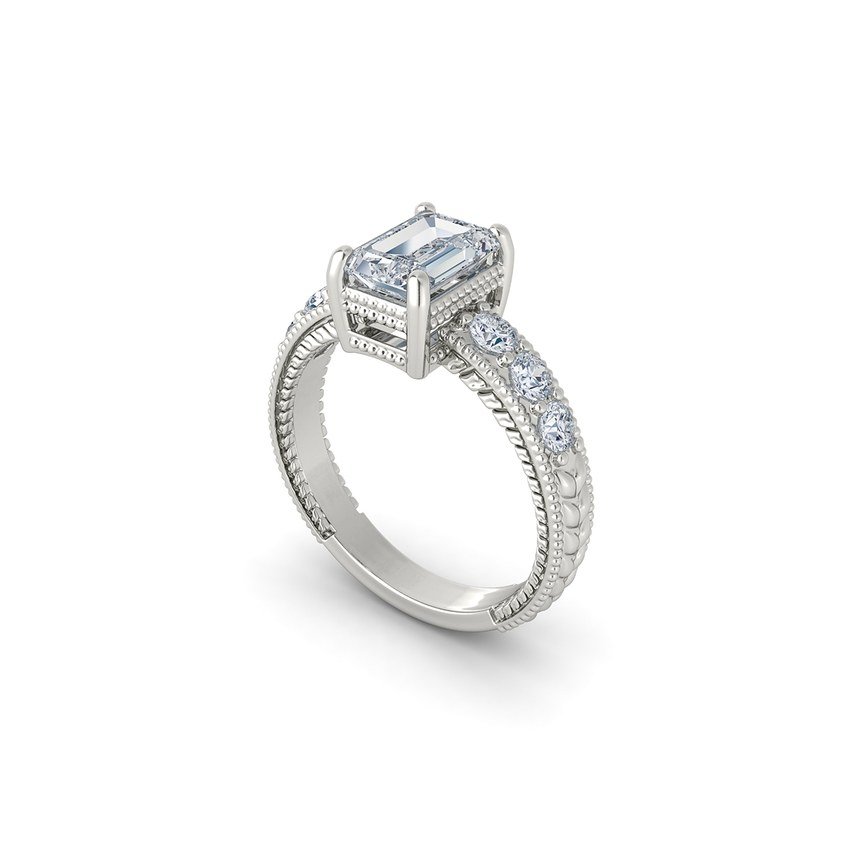Характеризующийся прямоугольной ступенчатой огранкой, открытой поверхностью и срезанными углами, бриллиант в огранке «Изумруд» часто благоволит настроению в стиле Арт-Деко. Хотя его блеск с эффектом зеркального зала не настолько эффектен и силен, вытянутая форма и угловые линии придают ясности бриллианту и улавливают свет достаточно резко и элегантно. Схожим видом огранки является огранка «Багет», которая имеет тот же дизайн, но меньшее количество граней. Она часто используется для тех драгоценных камней, что расположены по бокам, а не в центре изделия. Примером является ослепительной кольцо Gemvara из белого золота, украшенное королевской россыпью камней.