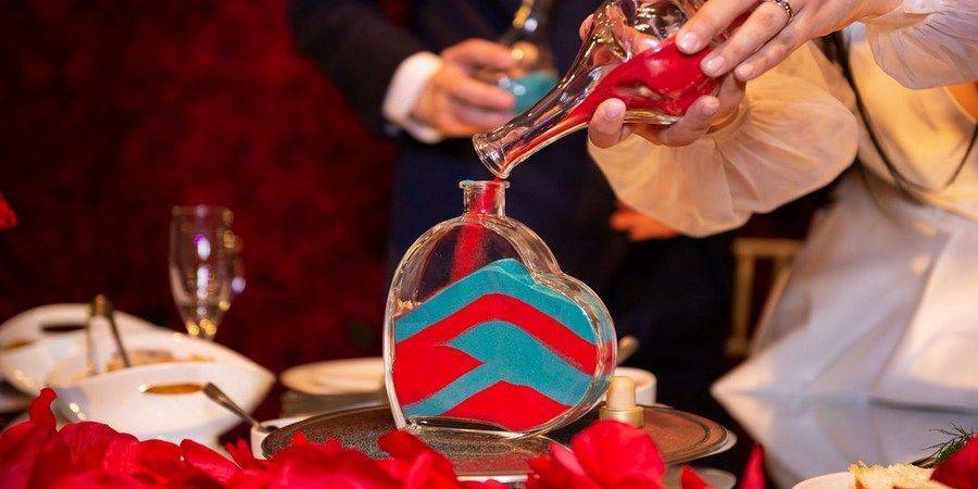 Если свадьба организована в каком-то определённом цвете, то его также используют и для песка. Узор, который получился, становится символом благополучного и крепкого союза. Сосуд хранится в семье долгие годы. Такой ритуал придётся по вкусу не только молодожёном, но и приглашённым гостям, так как выглядит красиво и романтично.