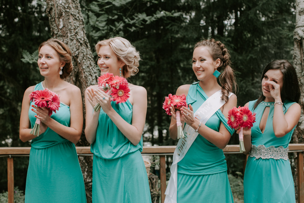Бирюзовые платья подружек невесты