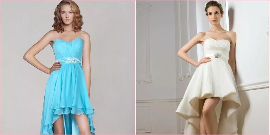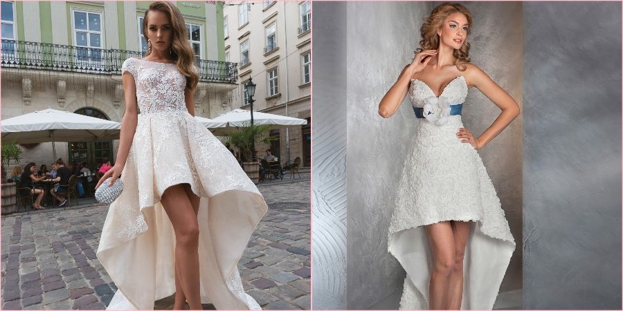 Платье короткое спереди и длинное сзади подойдет смелым особам, которые хотят выделиться из толпы, показать свою сексуальность и значимость праздника. Предпочтительно для молодых длинноногих новобрачных с хорошей фигурой.