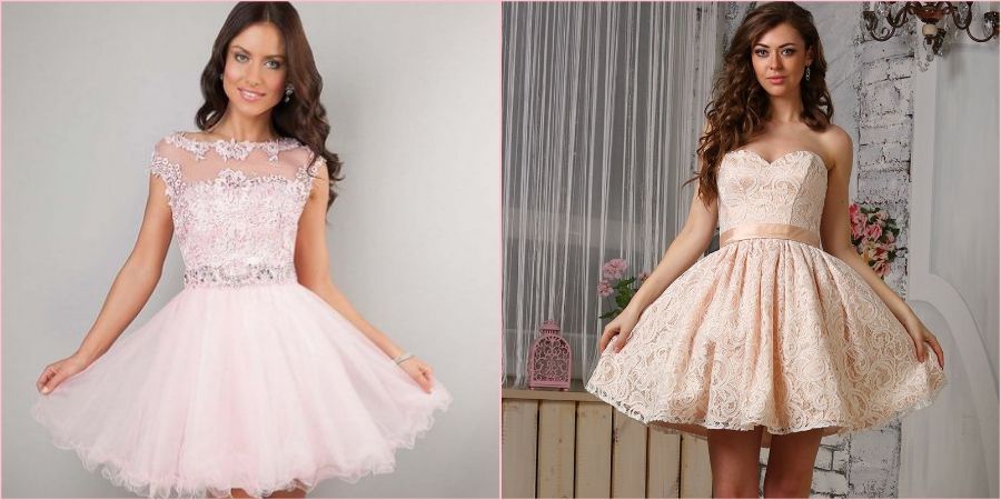 Особенностью такого платья является его пышная юбка, укороченная длина, отсутствие ворота и рукавов. Именно поэтому это отличная идея для юных девушек, которые не стесняются показать изгибы своей фигуры.