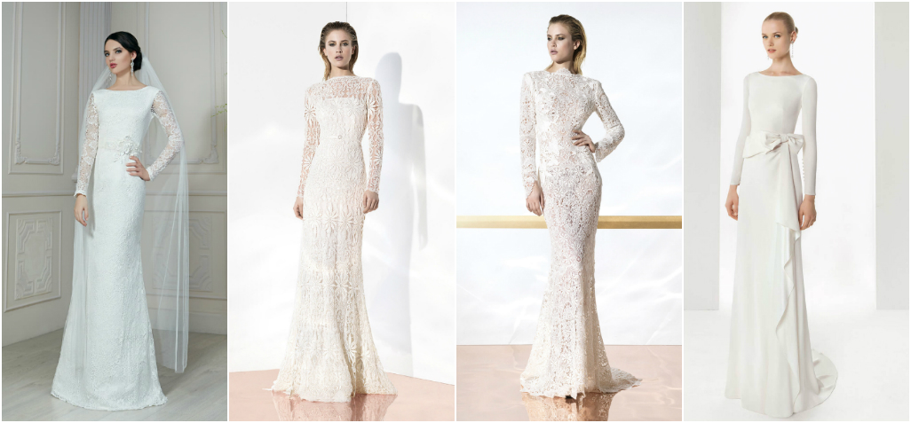 Как я уже говорила, скромное платье на свадьбу не предполагает определённого фасона. Но есть наиболее подходящие для этого модели.