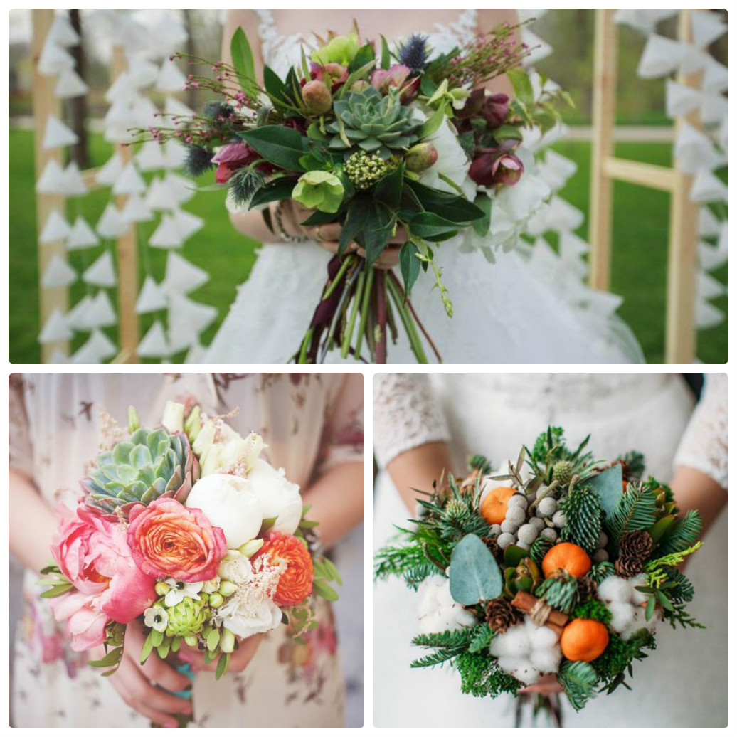 На заметку: иногда для особо экстремальных условий предусматривают букет дублёр, с максимальным содержанием суккулентов, сухоцветов, веточек, перышек и бусин, которым ничего не страшно. Для гражданской церемонии в ЗАГСе и венчанию в церкви понадобятся разные букеты, если в первом случае выбор сделан в пользу пафосной композиции. Таинство венчания подразумевает что-то светлое и классическое, без эпатажа.