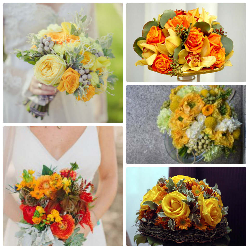 - осенний – представлен георгинами, гортензиями, астрами, герберами, пионовидными розами, может украшаться пожелтевшими листьями клена или других деревьев.