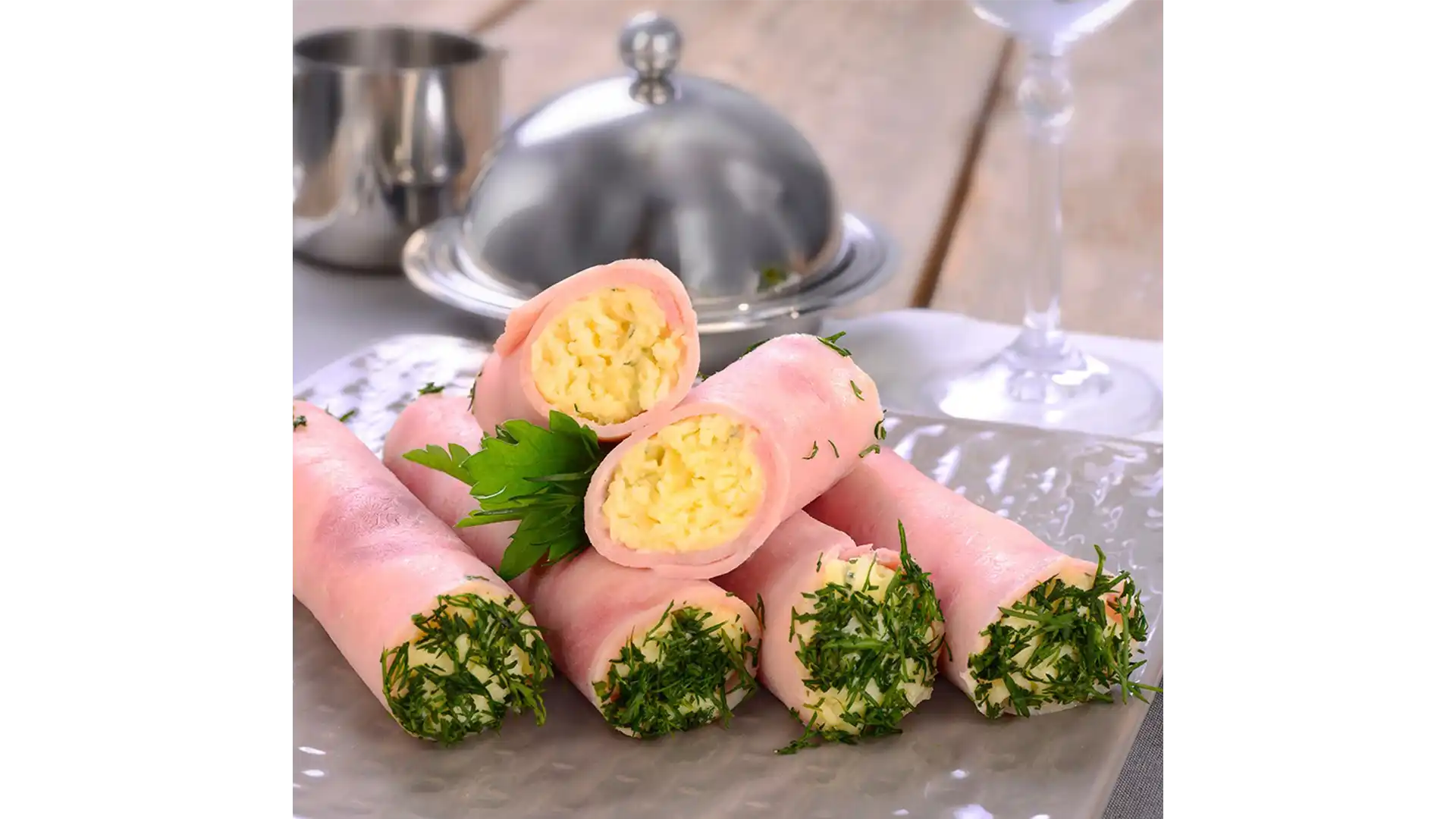 - Приготовленную начинку выложить на сырный пласт, распределить равномерно. Свернуть рулет и завернуть его в пищевую фольгу. Поместить в холодильник на 3-4 часа;
