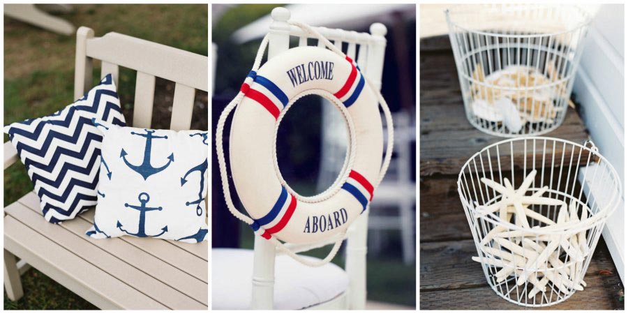 Конечно, здесь не обойтись без морских аксессуаров и цветов, чей оттенок напоминает о красках моря.