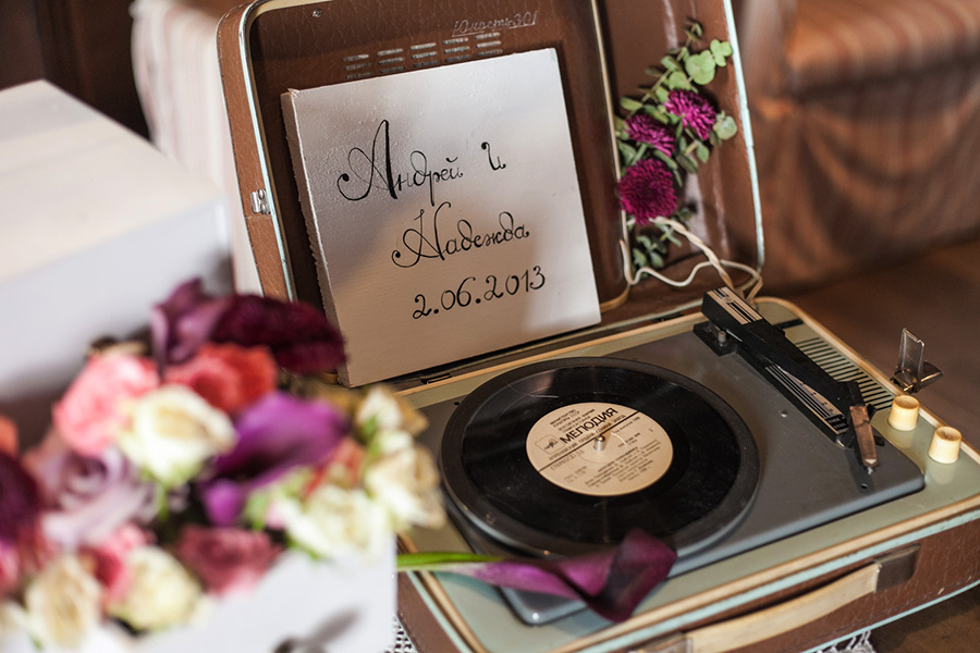 Для «стиляжной» свадьбы его можно заменить проигрывателем с виниловыми пластинками. Музыка также должна быть соответствующей: для винтажной свадьбы больше подходит классика, для американской – джаз, для «стиляжной» — буги-вуги и рок-н-ролл.