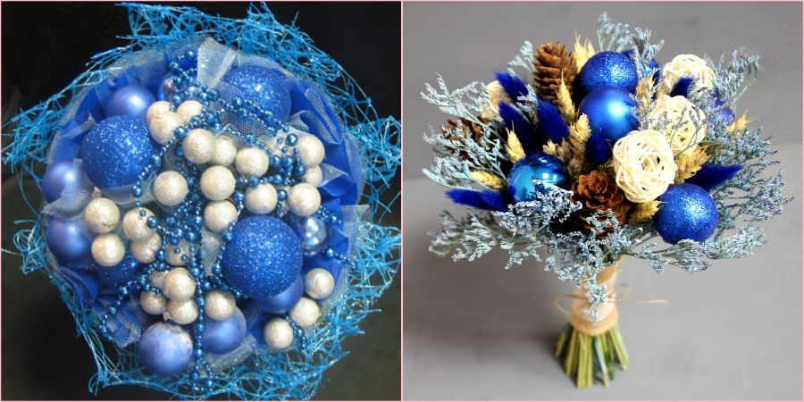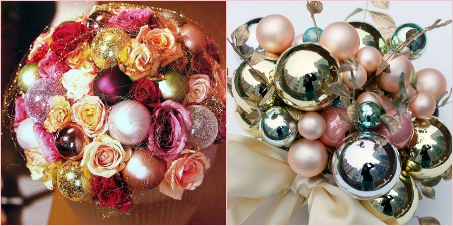 Эти детали стали часто применять современные невесты в свадебный день. Они выглядят ярко, необычно и отлично переливаются на зимнем солнышке. Так же как и предыдущий вариант, можно задействовать, только на прогулке, а потом заменить на букет из живых растений.