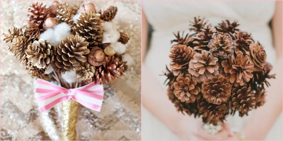 Еще одна практичная разновидность, подходящая в морозную стужу. Шишечки уместно дополнить сосновыми или еловыми ветками и хлопком.