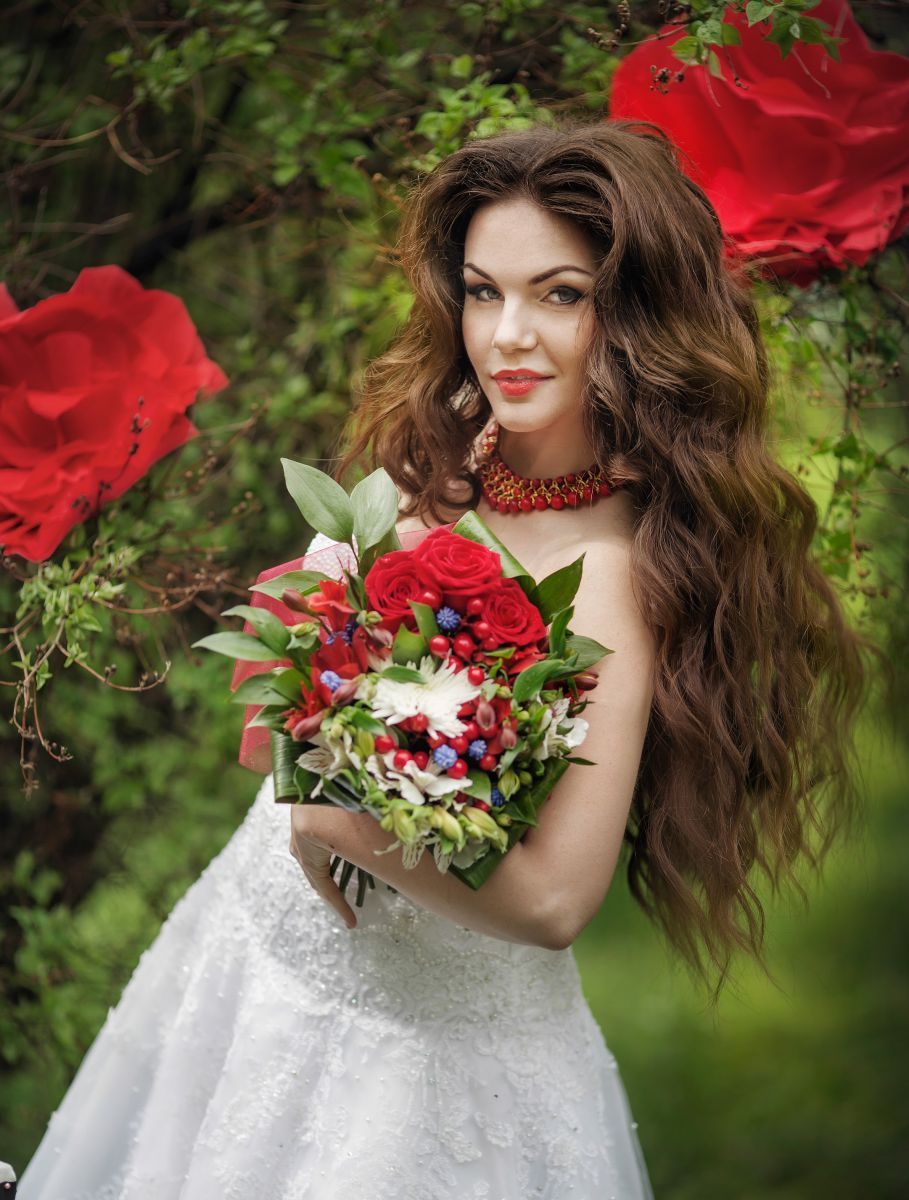 Свадебный букет должен гармонировать с образом невесты и перекликаться с основной концепцией оформления свадьбы. Так как свадьба сказочная, идеи для создания букета могут быть самыми разными и оригинальными. Это может быть классический букет из роз. А если вы хотите добавить яркий акцент в свой образ, можно остановить свой выбор на свадебном букете из красных роз в сочетании с белыми, что будет целиком в духе сказки Льюиса Кэрролла. Кстати, розы можно самостоятельно выкрасить красной краской.