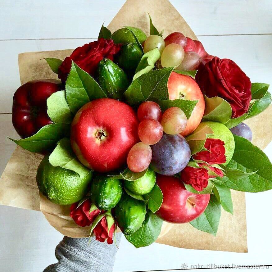 Букет из фруктов, ягод и овощей понравится девушкам, которые соблюдают правильное питание. Весной, после холода, организму требуется больше витаминов. Такой подарок поможет проявить заботу о сестре. Букет можно как сделать самостоятельно, так и купить готовый.