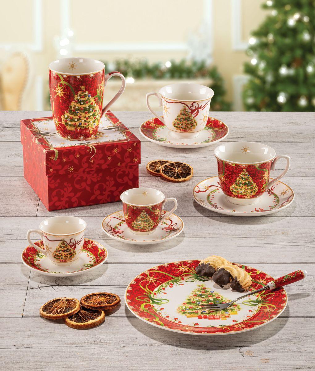 Дизайнерский набор чашек из тонкой керамики, выполненных в новогоднем стиле с резными узорами и забавными рисунками.