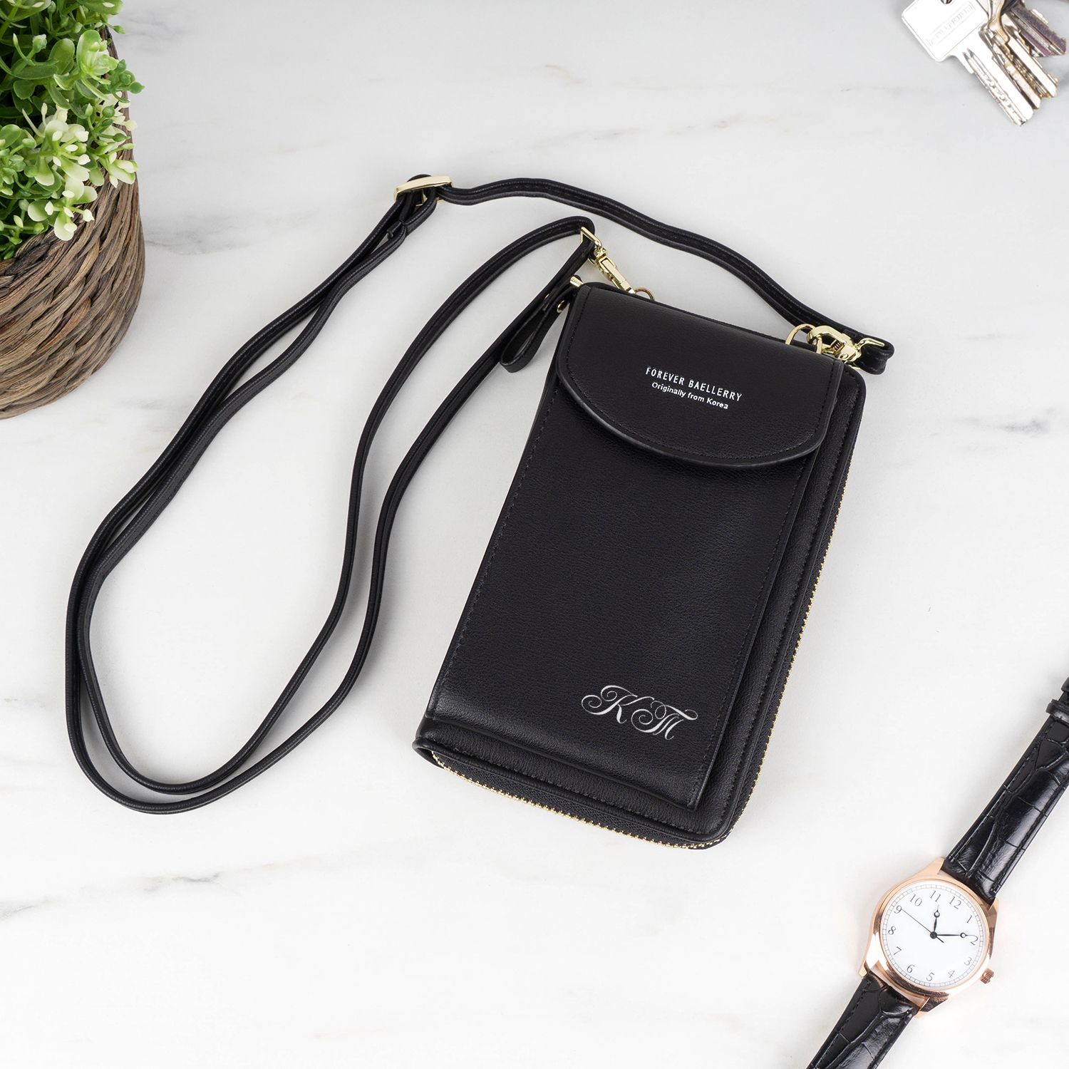 Портмоне с наплечным ремнем «Комфорт Блэк» с инициалами