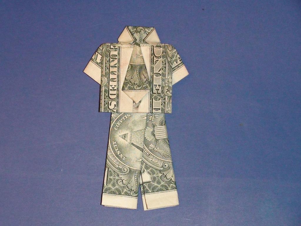 - Переворачиваем будущую рубашку. Сгибаем нашу купюру пополам.