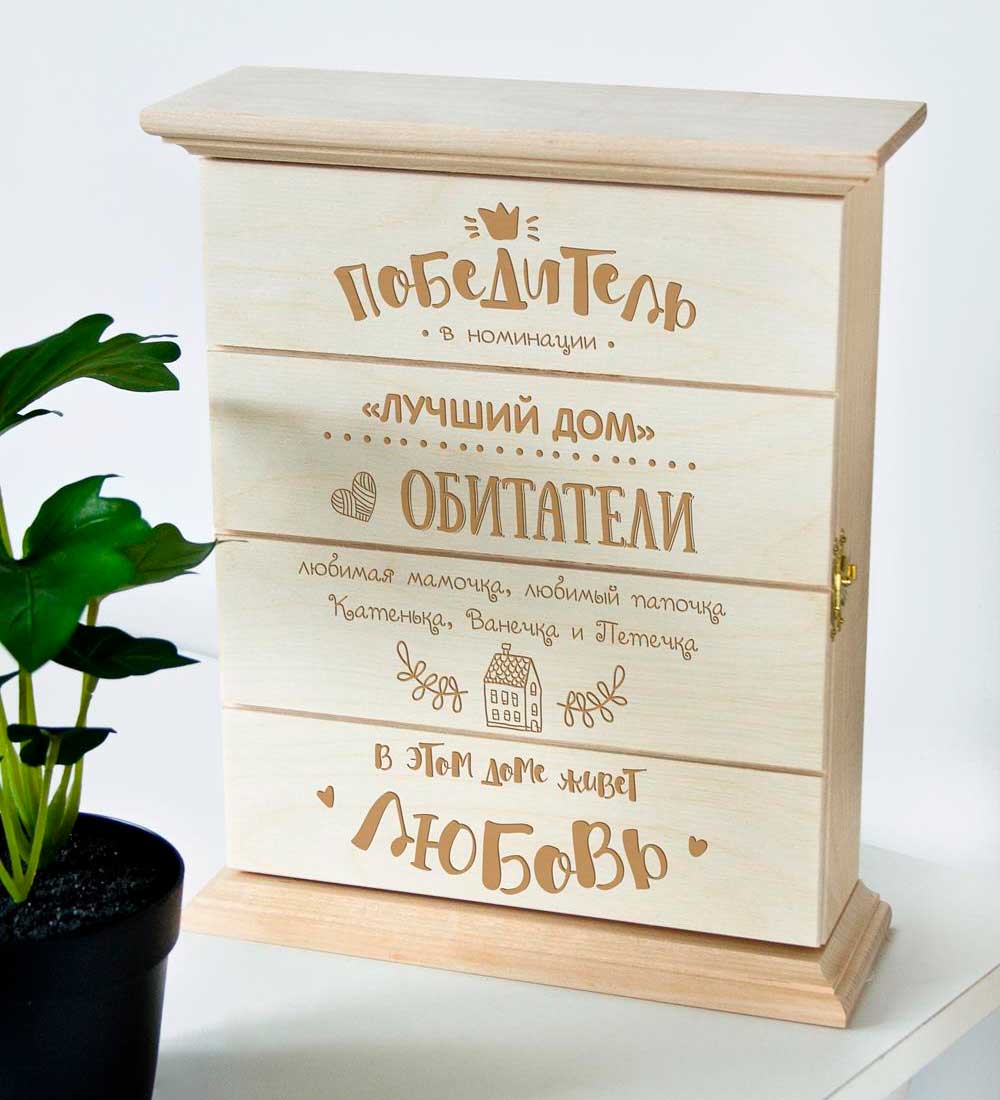 С таким подарком дама всегда будет знать, где ключи. Ключница элегантно вписывается в интерьер квартиры, а индивидуальная гравировка делает ее уникальной. Прекрасно подойдет и для подарка женщине на 55 лет. Ключница – отличное решение при выборе, что подарить женщине на день рождения.