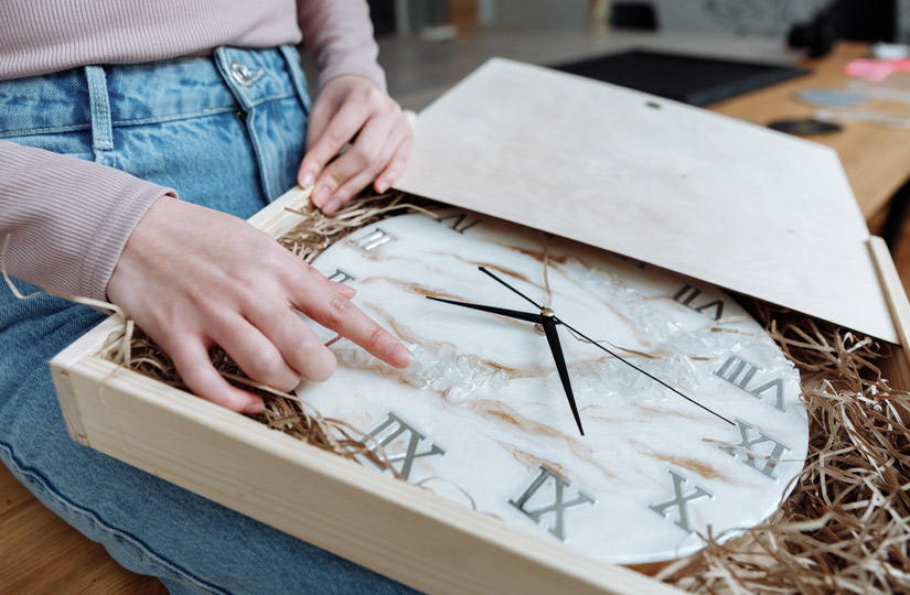 Главная ценность таких изделий — ручная работа и эксклюзивность. Каждое из них будет единственным и неповторимым в зависимости от того, как ляжет узор из смолы. А при изготовлении индивидуального заказа можно реализовать множество идей, отталкиваясь от пожеланий заказчика, фантазии и мастерства художника.