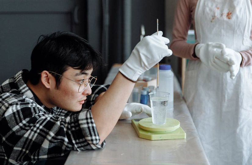 В процессе работы в жидкости могут образоваться пузырьки воздуха. Чтобы от них избавиться, нужно поместить стакан с эпоксидной смолой в емкость с теплой водой с температурой около 60 градусов. При повышении температуры пузырьки воздуха поднимутся на поверхность и исчезнут.