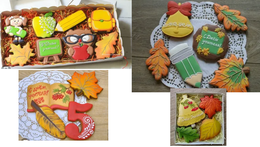 Тоже популярный подарок. Рынок предлагает большое разнообразие имбирных пряников ко дню Учителя.